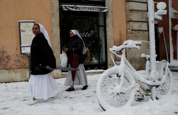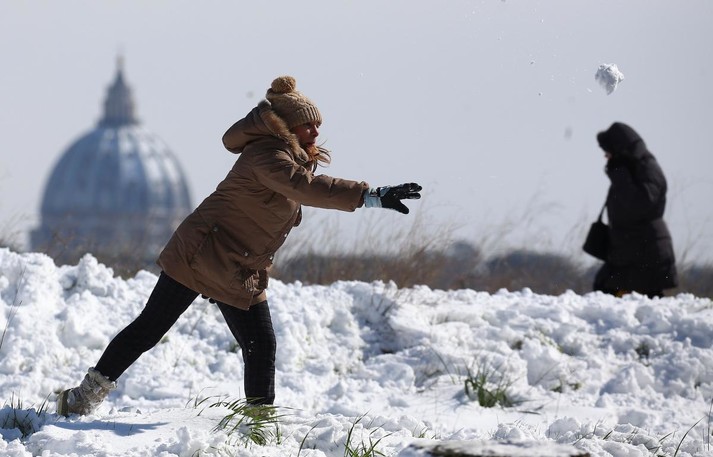 Из-за снегопада и похолодания также закрыты популярные среди туристов Колизей, Римский Форум, Палатин. Метро работает в нормальном режиме, а вот количество общественных автобусов, которые будут курсировать по городу, сокращается. Железнодорожный транспорт работает с перебоями. Но несмотря на похолодание, люди выходят на улицы, играют в снежки и фотографируются.