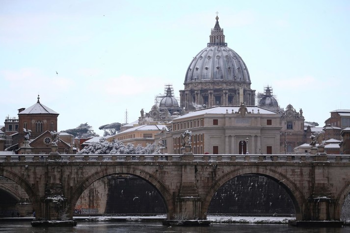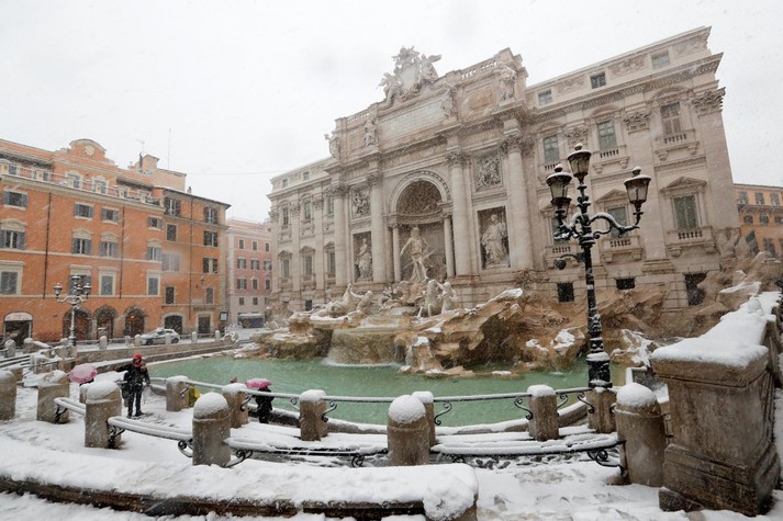 Рим парализовало из-за аномального снегопада. Эффектные фото