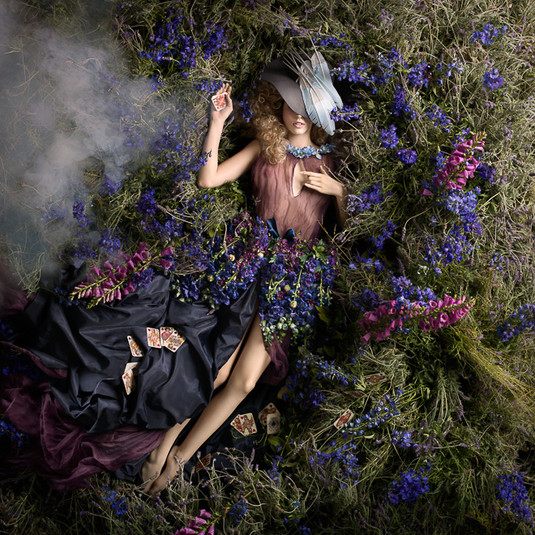 Не смотря на то, что Алексия мастерски обрабатывает снимки в Photoshop, она всегда предпочитает по максимуму снимать реальные вещи. Поэтому в свою студию фотограф привезла тысячи цветов. Также тщательно создавался каждый наряд.