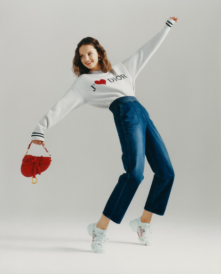В нее вошли свитшоты, футболки, сумки Lady Dior, Saddle и Dior Book Tote, туфли-лодочки, кроссовки, шарфы, платки и украшения, декорированные надписями «Je T’Aime Dior», графичными сердцами и фактурными цветами.
