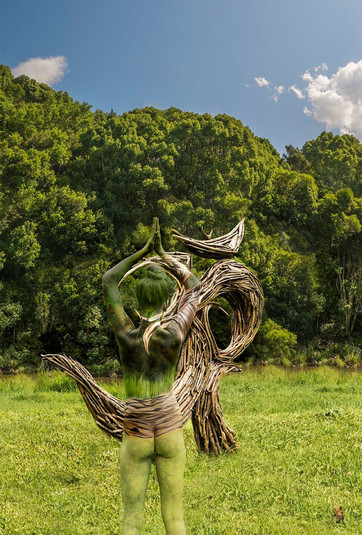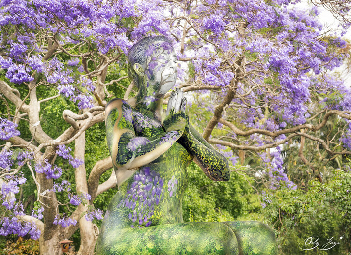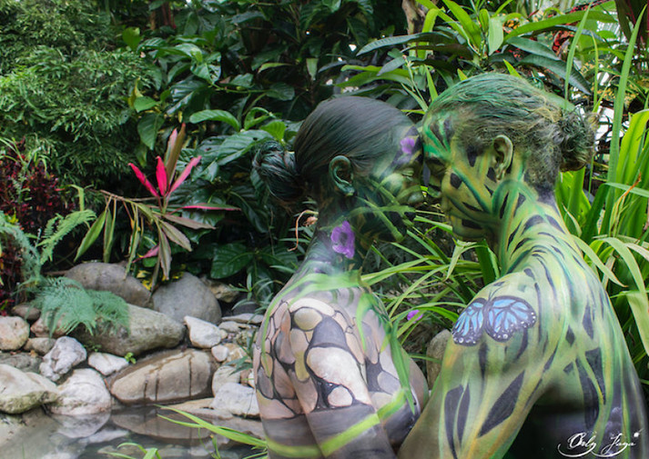 Художница Орли Снир создала серию стильных фотоколлажей, в котрых сочетает рисунки по телу с дикой природой. Она разрисовывает своих моделей таким образом, чтобы они максимально сливались с окружающим пространством. Этим самым она подчеркивает то, что счастливый человек как бы растворяется в окружающем мире.