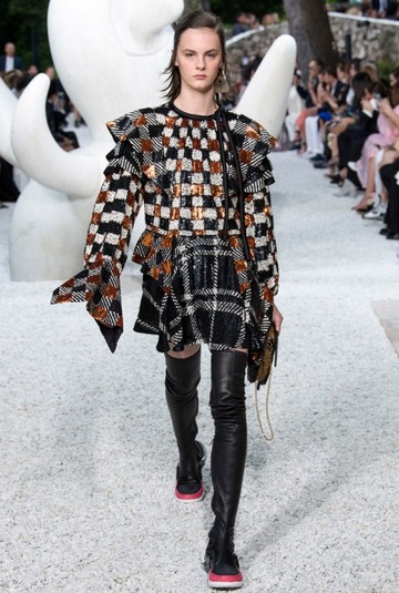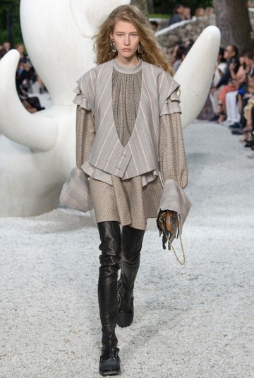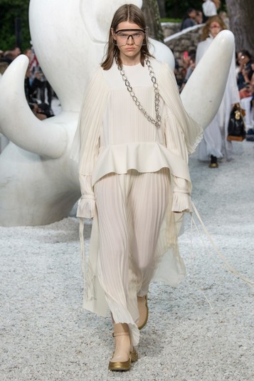Новая круизная коллекция Resort 2019 поразила гостей показа неожиданными костюмами, напоминающими героев «Звездных войн», стильными платьями в стиле 80-х и обувью с характерной подошвой. В новой коллекции преобладали классические оттенки: коричневый, серый, черный и белый.