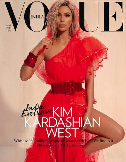 Звезда реалити-шоу Ким Кардашян впервые стала лицом мартовского выпуска глянца Vogue India. Светская львица появляется сразу на двух обложках, примерив смелые соблазнительные образы.