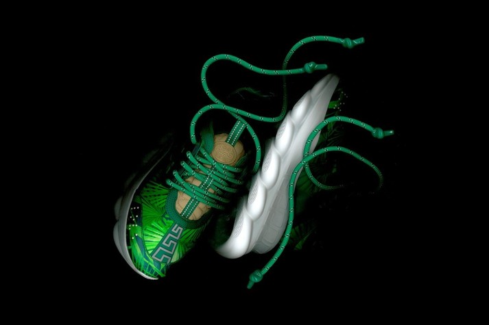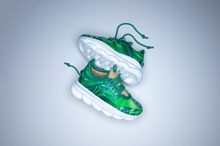 Культовая модель кроссовок Versace Chain Reaction выйдет в лимитированном количестве с принтом, имитирующим тот, который был на платье Лопес. Цена за пару составит 1075 долларов США.