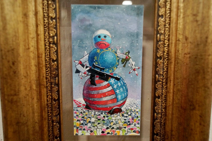 Последние 15 лет художник создает оригинальные миниатюры в стиле яркого лубка на бумажных деньгах, интересные не только фоном, но и сюжетами вроде писающего на снег Санта-Клауса, пожирающей города улитки-танка, «святой» троицы бутылок кока-колы и даже мужского полового органа с нимбом вокруг головки, пардон за наш французский.