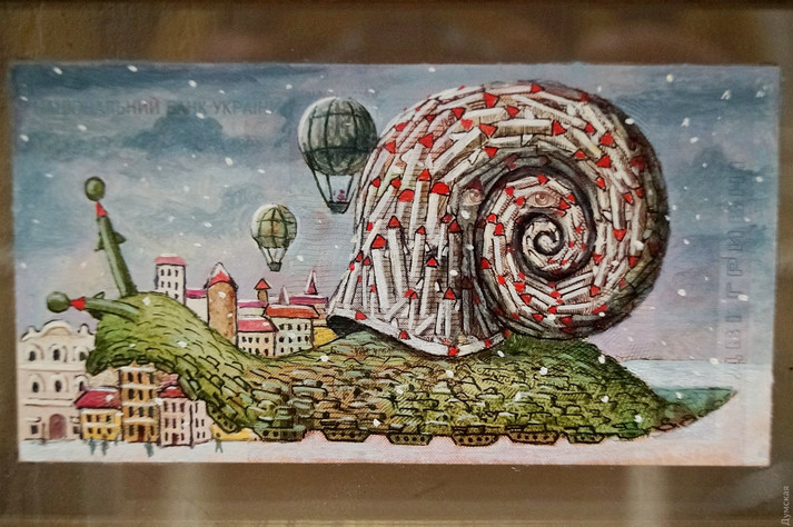 Сакральный фаллос и ядерная улитка: одессит создает уникальные картины на банкнотах