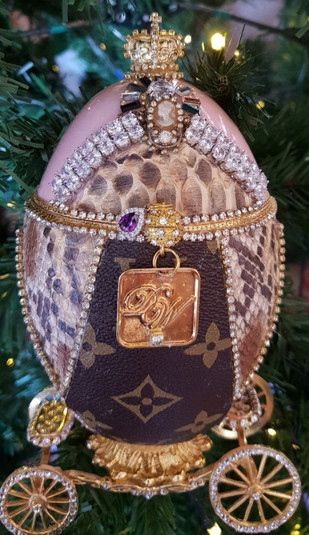 Настоящие страусиные яйца были окрашены сусальным золотом и алмазной пылью, а всего на дереве 3000 кристаллов Сваровски.