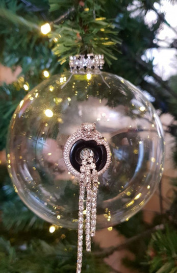 Ее нарядили в уникальные украшения ручной работы в виде шаров, сумочки, щелкунчиков с драгоценными камнями, ткани некоторых ведущих мировых модных домов, изделия Cartier, Chanel, Louis Vuitton. На дереве украшения, инкрустированы голубыми сапфирами и бриллиантами.