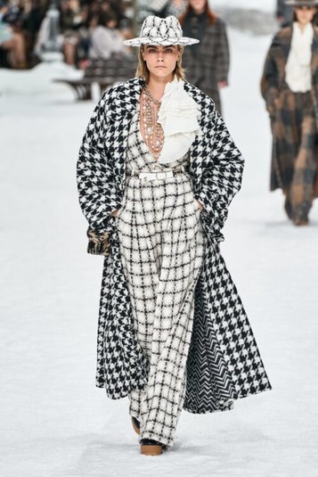 Так, в коллекции Chanel осень-зима 2019/2020 львиную долю образов украшала ломаная черно-белая клетка, Gucci признались в любви шотландской красно-зеленой клетке тартан, а Prabal Gurung показали образы с мелким узором виши.