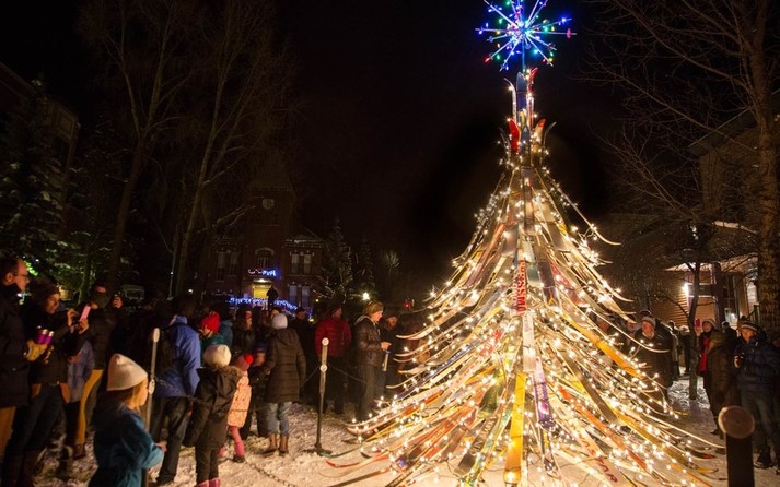 А вот в Колорадо создали семиметровое дерево из лыж. Украшенная елка огоньками и звездой из лыжных палок.