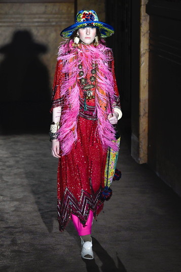А вот деальным местом для показа новой коллекции Gucci стал старый театр на Монмартре. «Здесь все немного пыльно, немного заброшено, но красиво», - прокомментировал свой выбор Алессандро Микеле. А самой эффектной кульминацей из всех, что были на всех четырех Неделях моды стало импровизированное выступление Джейн Биркин, которая поднялась со своего места в зале и в паузе между двумя частями шоу спела свою любимую песню Baby Alone in Babylone.