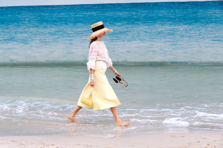 Вода стала основным мотивом и для шоу Chanel. По инструкции Карла Лагерфельда в Гран Пале был создан пляж с настоящими морскими волнами, вышкой спасателей и прибрежной растительностью. Стулья для гостей были поставлены прямо на белоснежный песок, по которому шли босоногие модели.