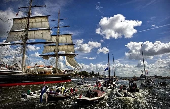 Раз в пять лет тысячи кораблей проходят морским парадом вдоль Амстердама, зачаровывая окружающих своим величием и изяществом.