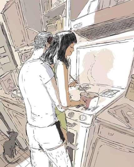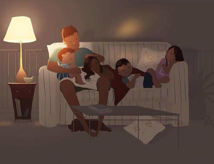 Его вдохновляет жена Катрина и трое прекрасных детей. Рисуя трогательные семейные моменты, Паскаль хочет показать, что счастье в мелочах, надо только уметь наслаждаться ими. Предлагаем вам взглянуть на его работы, которые показывают, что такое настоящая любовь.