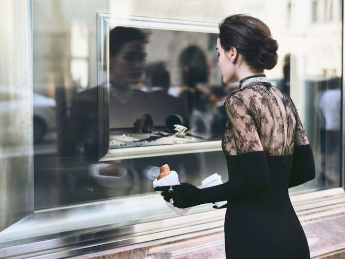 Напомним, что фильм с участием Одри Хепберн вышел на экраны в 1961 году. Актриса, сыгравшая роль легкомысленной девушки Холли Голайтли, влюбленной в украшения Tiffany, запомнилась зрителям маленьким черным платьем от легендарного дизайнера Юбера де Живанши, огромным солнцезащитными очками и любовью к круассанам.