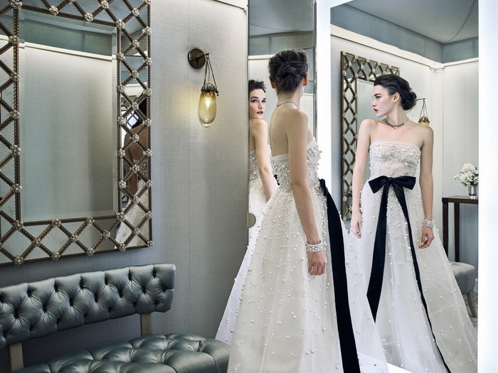 Чтобы не отступать от концепта маленького черного платья, часть моделей выполнена в черном цвете. Стоит отметить. что концептуальное решение дизайнера и уход от классических цветов свадебного платья взорвали fashion-индустрию.