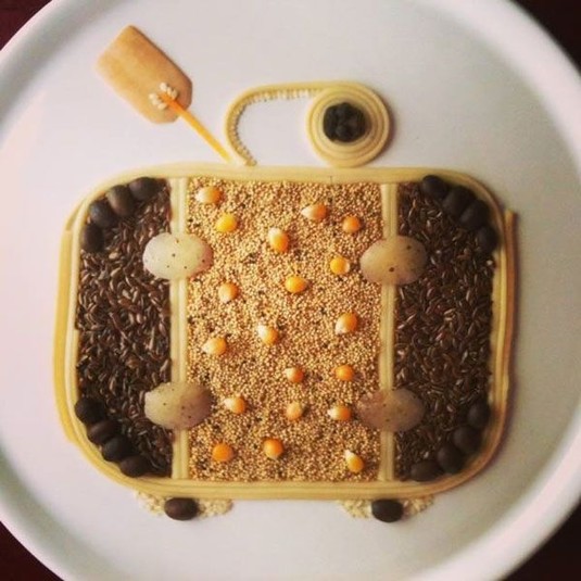 Как полотно она использует тарелку, а красками выступают продукты питания. Картины Анны состоят как из простых продуктов, например, сосиски, специи или хлеб, так и из более благородных и сложных – рыба, мясо.