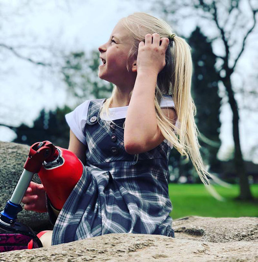 Несмотря на свое увечье, девочка активно занимается спортом, поэтому находится в относительно хорошей физической форме и определенно отличается от своих сверстников уверенностью в себе и твердым характером. Ее папа Алекс называет ее "настоящим вдохновением."