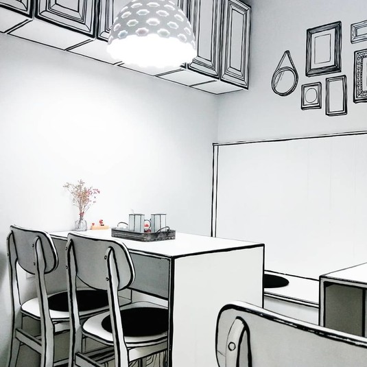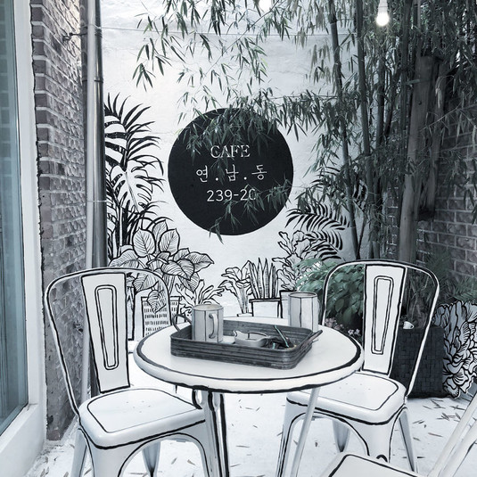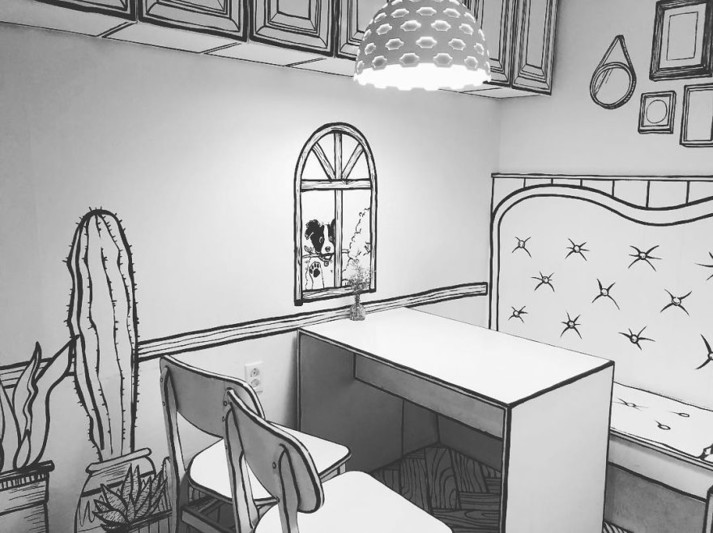 Ярко среди других выделяется заведение «Cafe Yeonam-dong» в Сеуле, где гости могут побывать в особом мире. Вся мебель там будто вырезана из картона и обведена черным карандашом, что дает ощущение туристам, что они – куклы или частицы игрушечного мира.