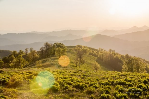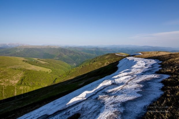 Часто снимки делают туристы, которые отправились в горы на праздники. «Поселок Дубовое, поход на гору Апецка (1510 м). Карпаты – место, где весна чувствуется в полное мере! Внизу изобилует май, а в долине - крорусы, нарциссы и снег... И в дополнение – незабываемый закат солнца», – комментирует красоту карпатских гор автор фотографий Алексей Карпович.