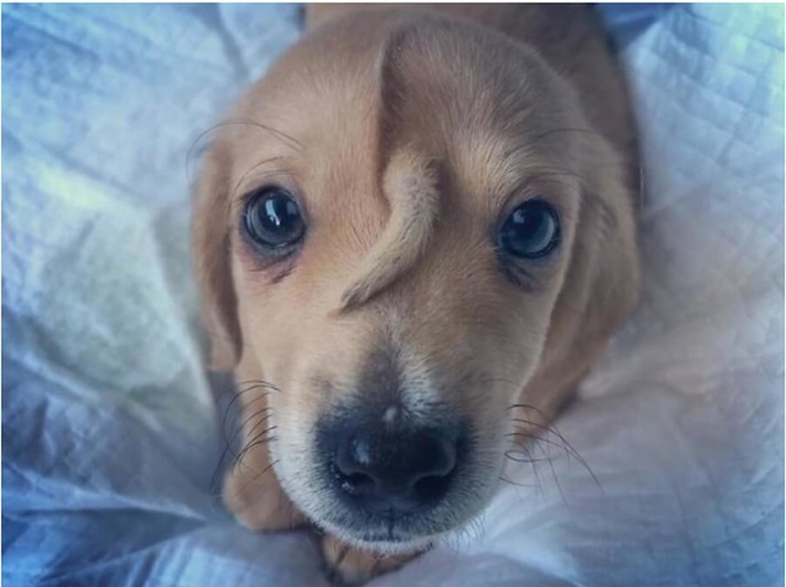 Щенок-единорог: зоозащитники нашли собаку с «хвостом» на голове