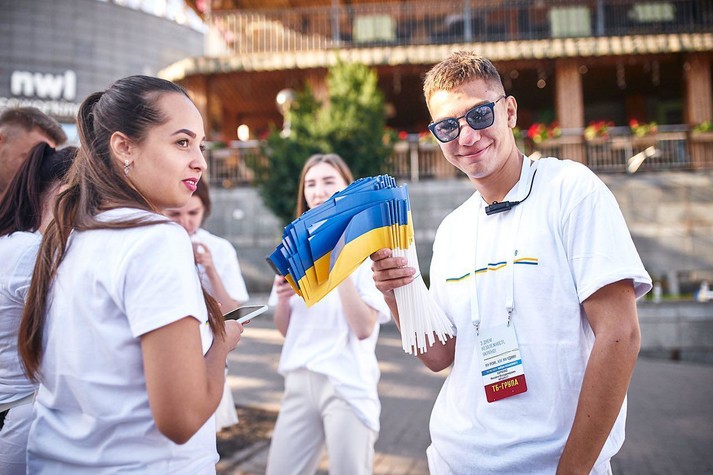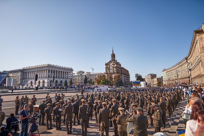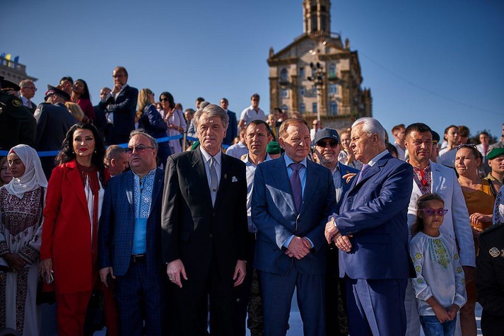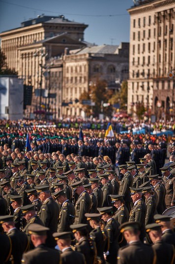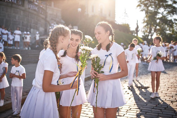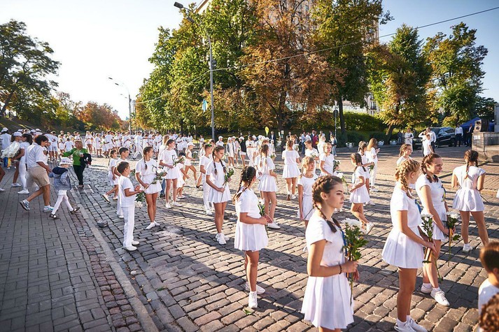Торжественная часть состояла из трех частей, слоган которых звучал: «Мы - разные, но мы - едины». Шествие началось с минуты молчания на Аллее Небесной сотни.