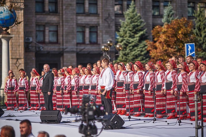 В этой части программы приняли участие хор им. Г. Веревки, оркестр и хор ВСУ, оркестр Национальной полиции Украины, оперные певцы Андрей Романенко и Евгений Орлов, оперные певицы Анжелина Швачка и Оксана Крамарева. Версия гимна на пианино исполнил легендарный композитор Мирослав Скорик. Народная артистка Украины Тина Кароль спела куплет гимна на крыше консерватории, а представитель нового поколения - молодая певица Алина Паш зачитала рэп в сопровождении барабанщиков Почетного караула президентского полка. По замыслу режиссера каждый элемент этого масштабного действа показал, что пусть мы все разные, мы - едины.