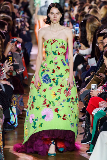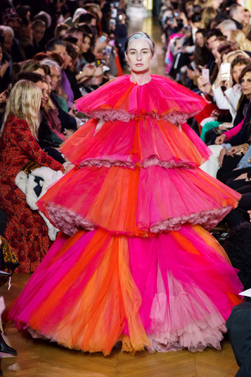 Особый восторг у присутствующих вызвал финальный выход, когда на подиуме появилась британская топ-модель Эрин О'Коннор в фатиновом платье оттенка фуксии, напоминающем шар воздушной ваты или облака на закате.