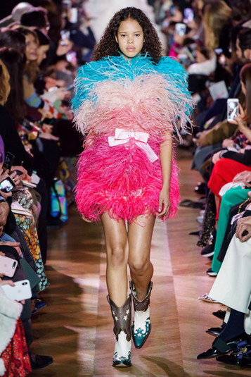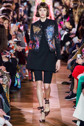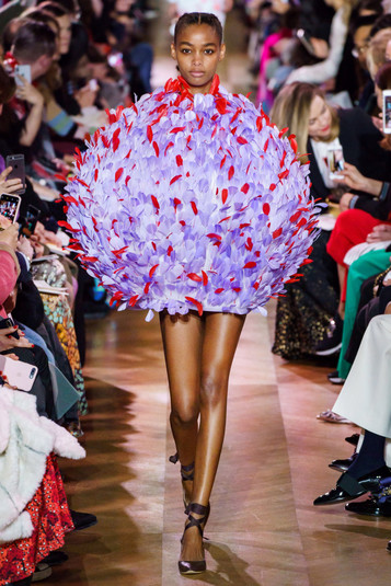 В коллекции все эти образы и детали смешались в череду нарядов из перьев, среди которых особенно выделялось невесомое платье-шар, жакетов, украшенных архитектурными воланами и сложносочиненной вышивкой, и вечерних туалетов, напоминающих звездное небо.