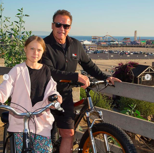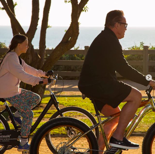 «Было здорово увидеть мою подругу и одного из моих героев Грету Тунберг на прошлой неделе, и вместе покататься на велосипеде по Санта-Монике. Я был настолько взволнован, когда знакомил ее со своей дочерью Кристиной. Продолжай вдохновлять, Грета!» – написал Шварценеггер.