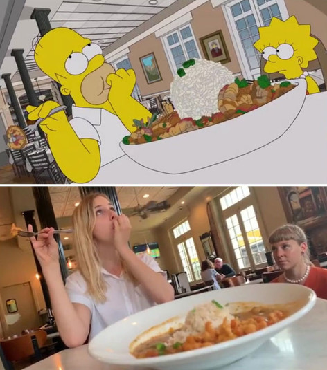 В 17-й серии 29-го сезона шоу главный герой — Гомер Симпсон — отправляется по ресторанам Нового Орлеана и пробует 52 фирменных блюда в 32 закусочных. Девушки решили повторить маршрут персонажа и покадрово переснять гастрономические приключения Гомера.