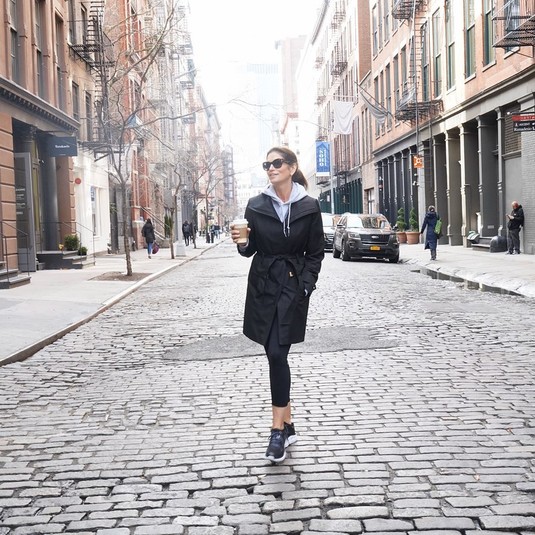 Сама Синди также в своем микроблоге решила показать, как проводит день. И начала с раннего утра. Судя по всему, оно началось активно: сначала – с пробежки, а после – с кофе. Синди позирует в черных легинсах, сером худи, комфортных кроссовках, а также черном плаще, который подчеркнул ее стройный силуэт.