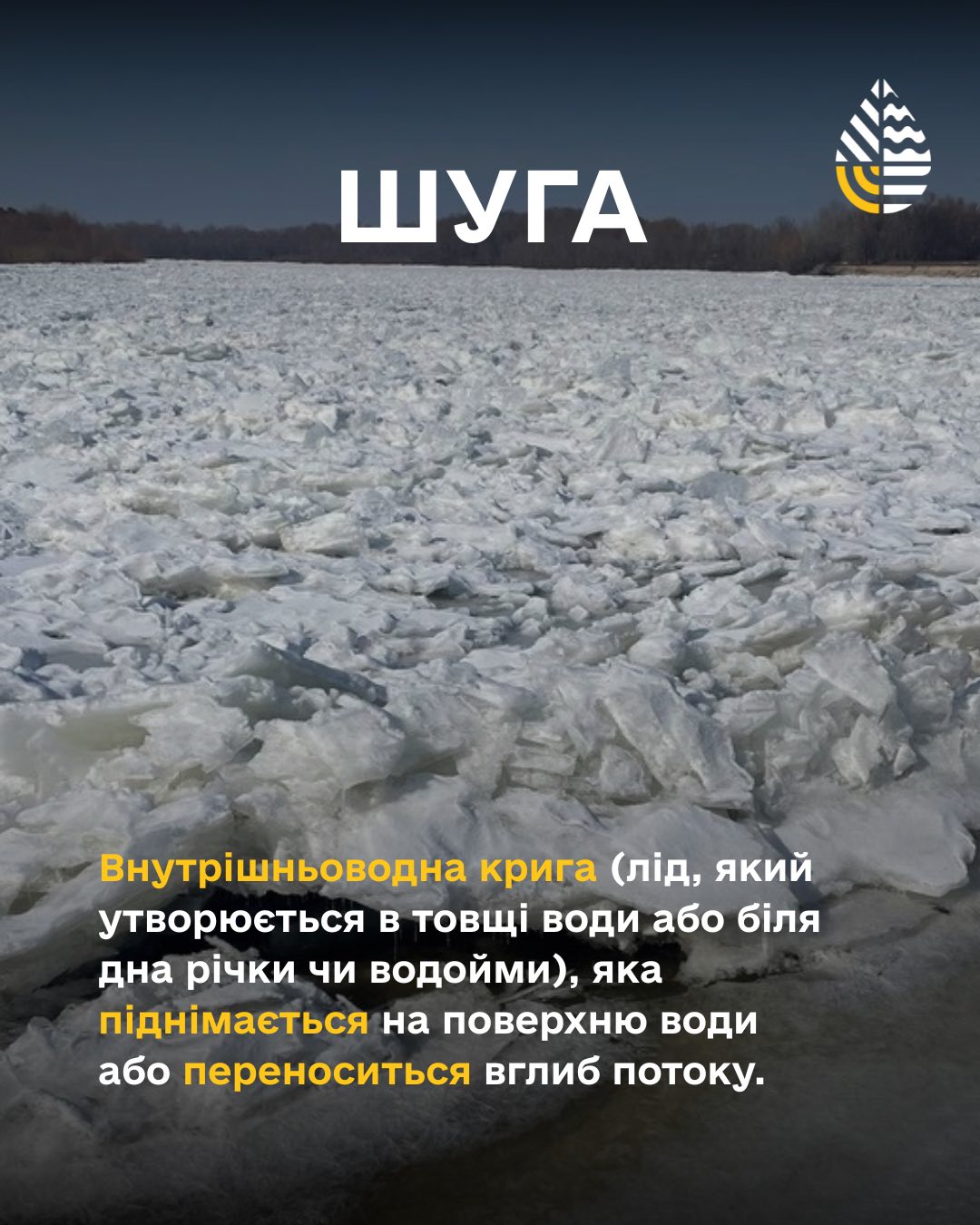 Під час активного льодоходу формується «шуга» – внутрішньоводна крига, яка піднімається на поверхню або переноситься течією.