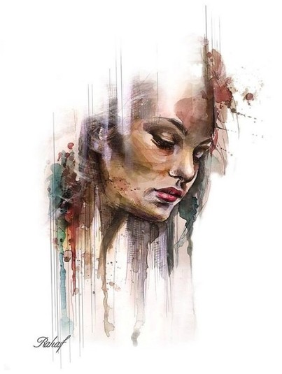 Сегодня – лёгкая и небрежная, окутанная мягкими таинственными цветами и оттенками, завтра – дерзкая и яркая с броскими акцентами на чьих-то щеках и губах. Вот почему лишь самые смелые художники не колеблясь отдают ей своё предпочтение. Ведь познакомившись с ней однажды, уже ни на что другое её не променяешь. Это всё равно, что отдать душу дьяволу, получив взамен возможность творить в подобной технике и стиле, полностью отдаваясь любимому делу. Собственно говоря, Рахаф Дк Албаб (Rahaf Dk Albab) – художница из Сирии, сделав свой выбор в пользу акварели, ни разу об этом не пожалела.