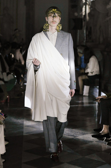 Используя одни и те же приемы — микс high и low и историзмы, — креативный директор Алессандро Микеле рассказывает новые истории