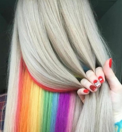 Instagram захватил новый, весьма необычный бьюти-тренд: девушки со всего мира украшают свои прически скрытой радугой