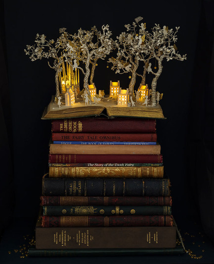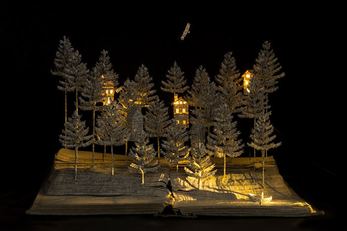 На разворотах книг возникают дома, корабли, цветы и маяки. Они даже светятся в темноте.