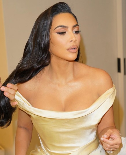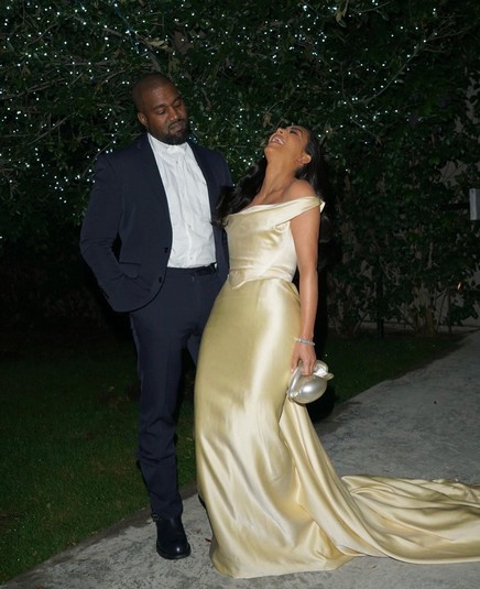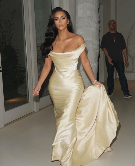 Ким Кардашьян вышла в свет в роскошном платье и под руку с мужем