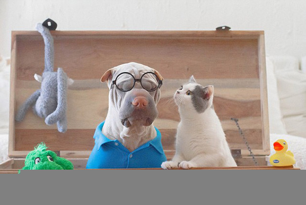 Смешной шарпей и его друг котик стали звездами Instagram
