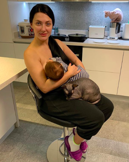 «А нам плюс ко всему сегодня 4 месяца! Молоденький Елисейка и молоденькая Снежанка», - подписала она кадр.