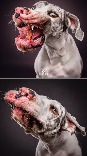 Журналист и начинающий фотограф из Германии Кристиан Вилер сделал серию снимков собак, когда они ловят пастью брошенные им угощения.