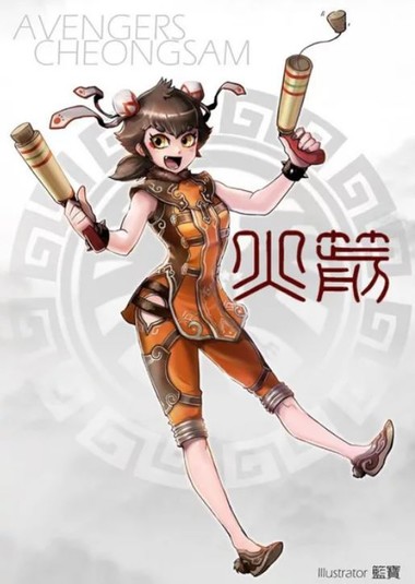 Девушки изображены в цветах и с элементами одежды, характерными для того или иного супергероя. Например, хрупкая красотка, которая является вариацией на Тора, держит в руках массивный молот, а женская версия Халка облачена в просторный зеленых балахон.