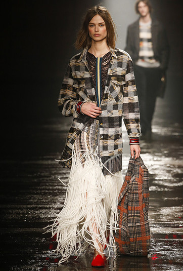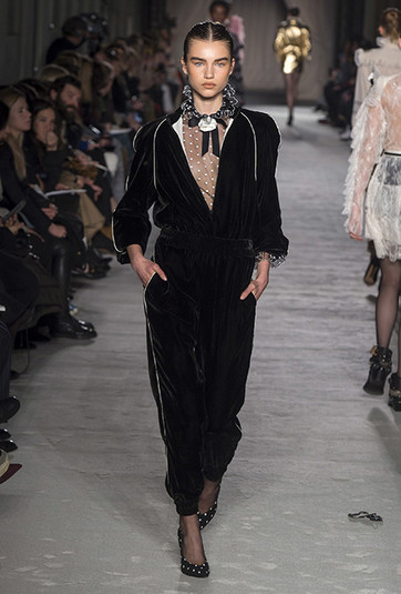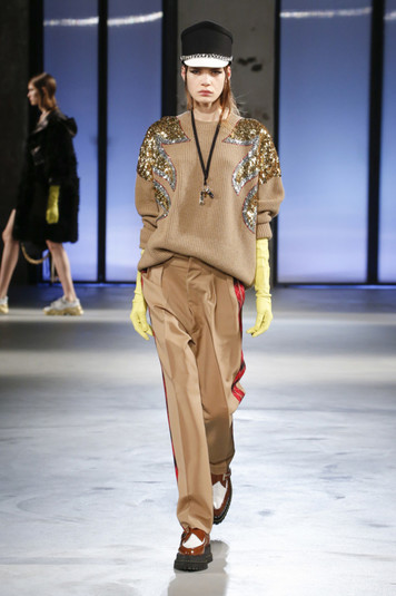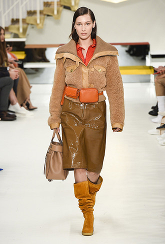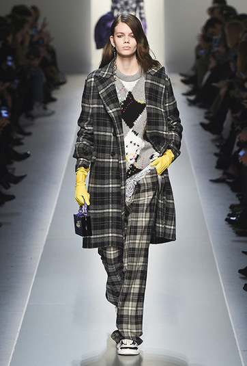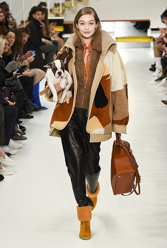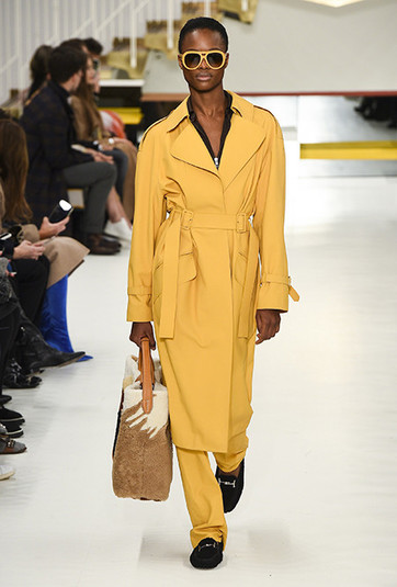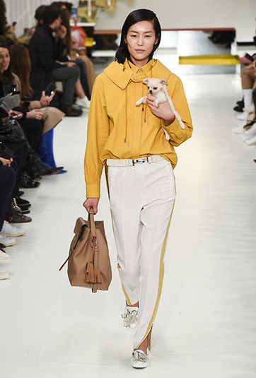 Tod’s продемонстрировали простой, лаконичный и вместе с тем современный стиль. Черные кожаные брюки и косухи – типичные атрибуты стиля гранж – сочетаются с флисовыми олимпийками, намекающими на остромодный горпкор, стиль городских туристов. А право открыть само шоу досталось Джиджи Хадид с щенком французского бульдога.