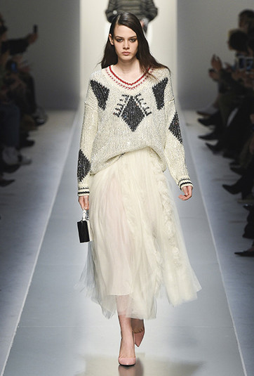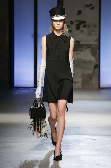 Ещё один бренд показал коллекцию «Назад в будущее». Иконы стиля предстали перед зрителем в образах из 60-х. Центральною роль в показе сыграл наряд, в котором вышла дочь Синди Кроуфорд – 16-летняя Кайя Гербер. Она появилась на подиуме в костюме, который напоминал стиль одежды вдовы президента Джона Кеннеди, Жаклин.