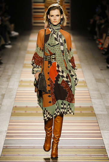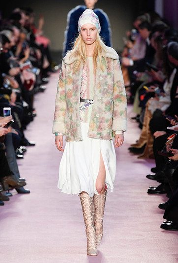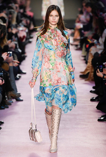 Итальянские дизайнеры воспевали классические каноны женственности. Приталенные силуэты, тонны шуршащих оборок, летящие фактуры – именно такими и вышли коллекции Roberto Cavalli, Etro и Blumarine.