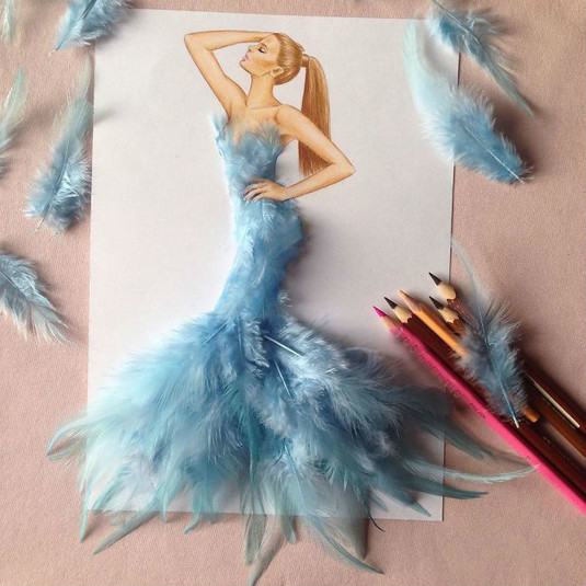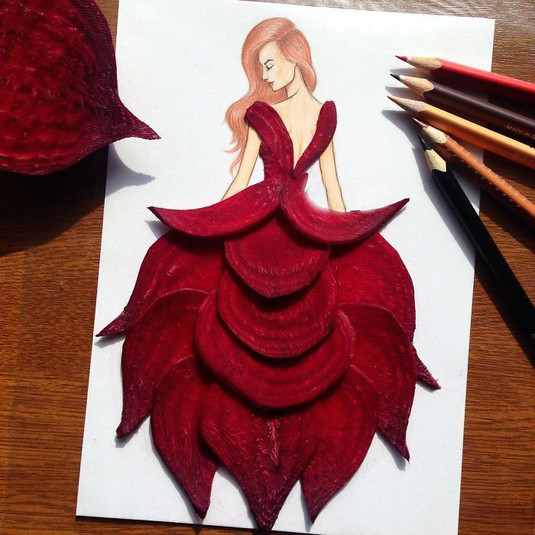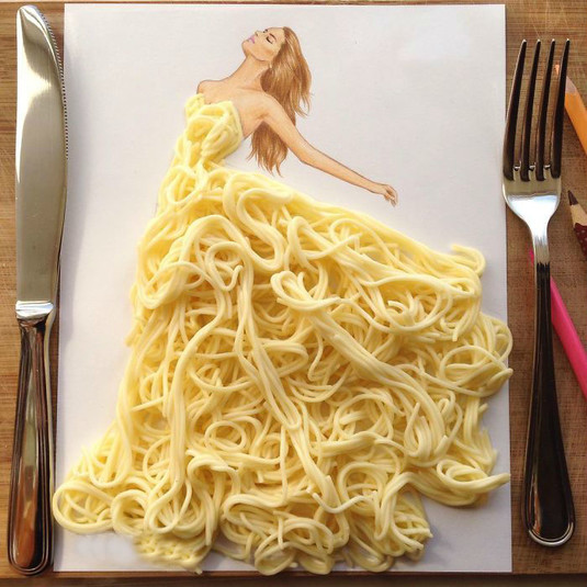 Спагетти, перья, рис и свекла: 20 фантастических платьев от модного иллюстратора из Армении