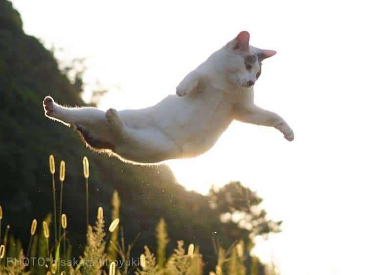 Фотограф из Японии Хисаката Хироюки знает, как эффектно поймать в свой объектив кошку в нужный момент.