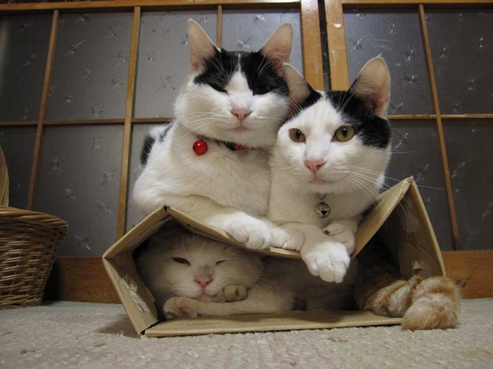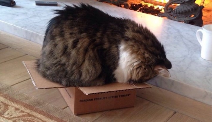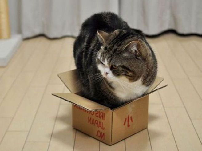 Коты, которые любят залезать в разные коробки и сосуды, менее подвержены стрессу. Если в кошки нет своей коробки, то подойдет квадрат, намеченный на полу.