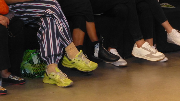 Шлепки и туфли, босоножки и кроссовки – все это можно было наблюдать на ногах гостей модных показов украинских дизайнеров. Несмотря на разнообразие брендов и трендов, общий вид нижней части луков гостей fashion-показов не сильно впечатляет: кроссовки, «байкерские» ботинки, туфли с тракторной подошвой, босоножки и мюли (так называемые лофферы без пятки, шлёпанцы с закрытым передом и длинным носком).