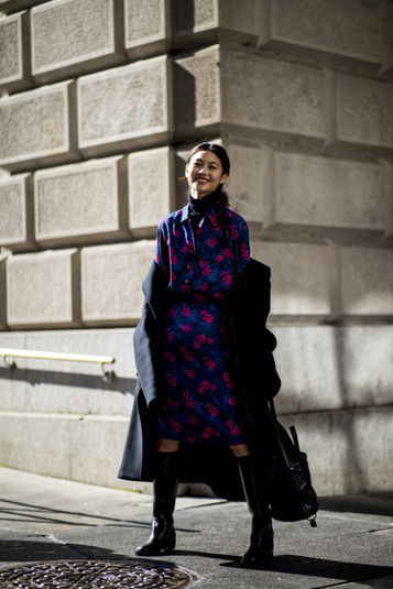 Гостям показов пока везет с погодой, которая позволяет им носить межсезонные пальто нараспашку, подбирать к ним аккуратную обувь и не кутаться в безразмерных шарфах.